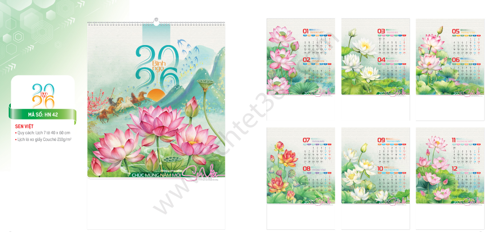 Hoa sen là biểu tượng của Việt Nam, vì vậy hình ảnh Hoa Sen không thể thiếu trong các mẫu in lịch tết 2026: HN 42 AC110 NH 28 Chuyên mục: Lịch 7 tờ